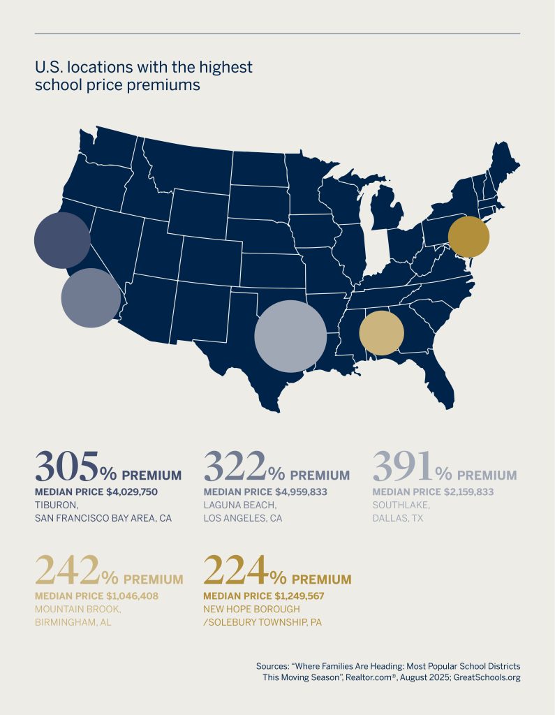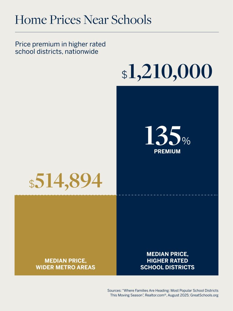 A recent study by Realtor.com®, “Where Families Are Heading: Most Popular School Districts This Moving Season,” published in August 2025, compared median listing prices in the most popular U.S. school districts with those in their wider metro areas.