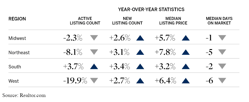 This Realtor.com data found the combined annual median list-price growth rate for active listings was 5.1%. The data below looks at regional specifics, showing that on average, Northeastern metros had the highest price-growth rate (with an average increase of 7.8% year over year). Larger Southern metros saw the lowest growth (3.2%). Data like this help inform pricing on the sellers’ side and offers on the buyers’ side.